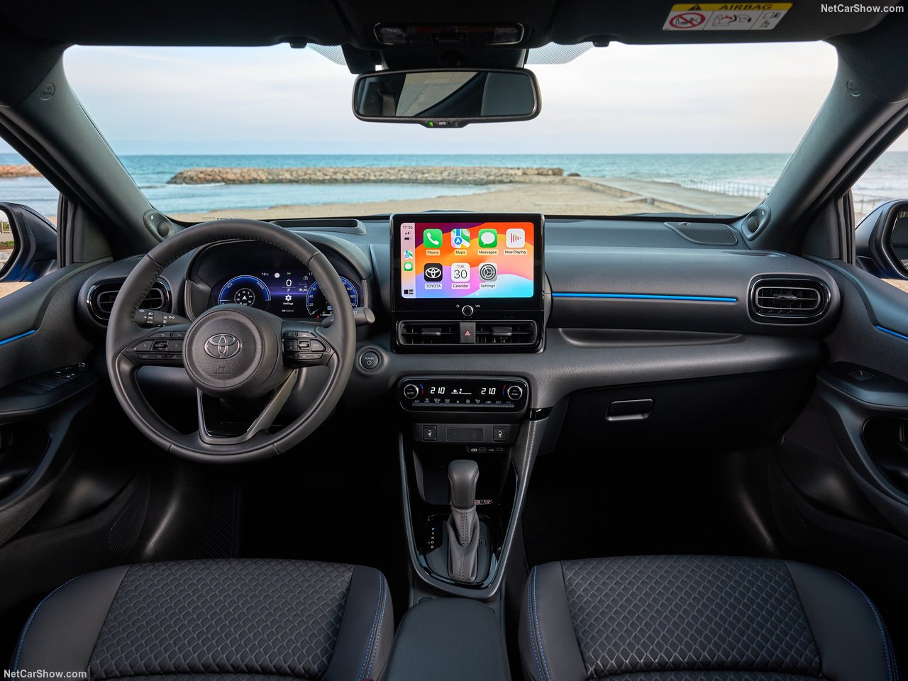 Il design della Yaris Hybrid Active MY24 si distingue per linee moderne e sportive, con una calandra anteriore dal carattere deciso, fari LED e dettagli aerodinamici che le conferiscono un look grintoso ed elegante. Gli interni, curati e confortevoli, sono dotati di un sistema di infotainment con touchscreen da 9 pollici, compatibile con Apple CarPlay e Android Auto, per una connettivitĆ intuitiva e immediata.